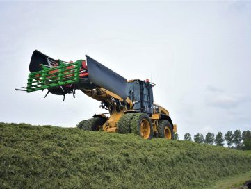 Tevens wordt de shovel ingezet om bij de veehouders graskuilen te maken. Hiervoor is de shovel uitgerust met dubbellucht en een kuilverdeler.